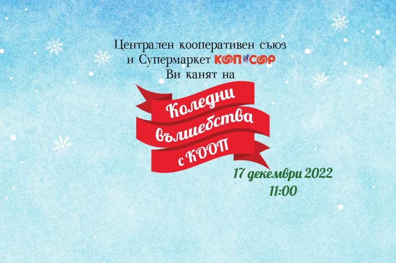 Каним Вас, Вашите семейства и близки да се потопим в „Коледни вълшебства с КООП“ на 17 декември 2022 г., (събота), от 11:00 ч. в Супермаркет КООП, кв. „Красна поляна“, бул. „Никола Мушанов“ №116.