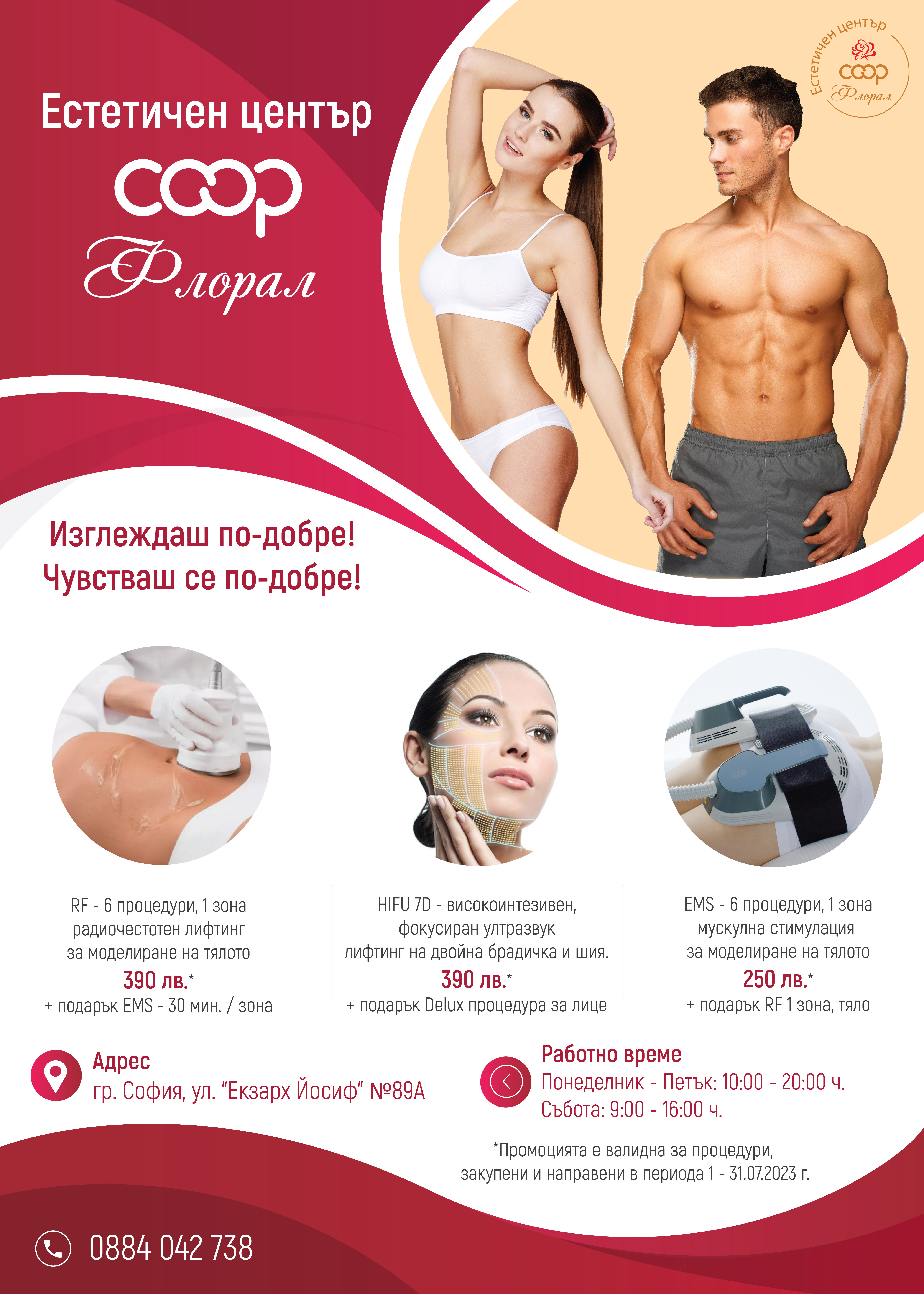 Само през месец юли клиентите на естетичен център „КООП Флорал“ могат да се възползват от специалните пакетни предложения: