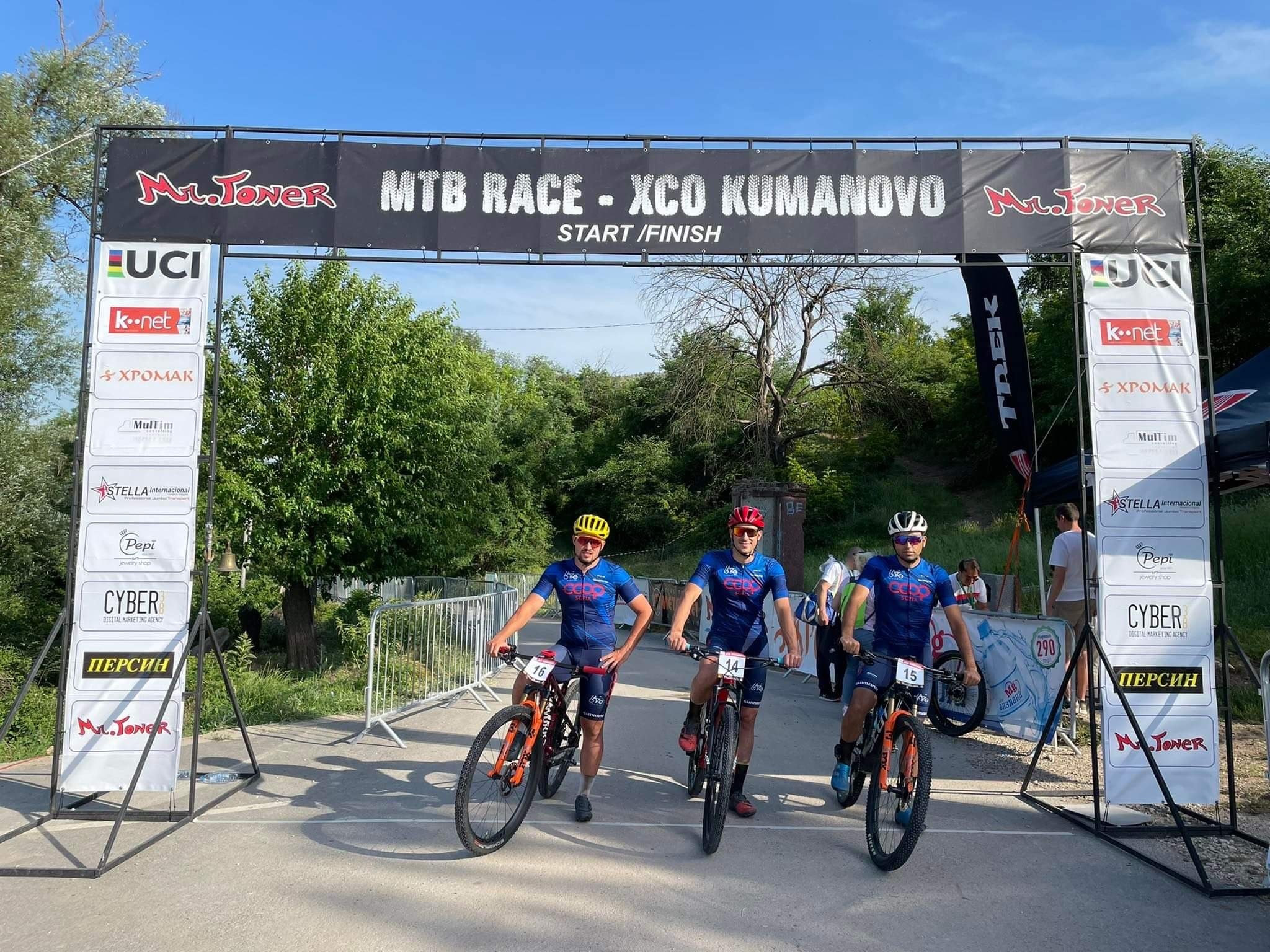 На старт-финала на „XCO Куманово“ – Емил Стойнев, Александър Алексиев и Станислав Грабчев (от ляво надясно). Фотограф е четвъртият ни участник Георги Вълчев