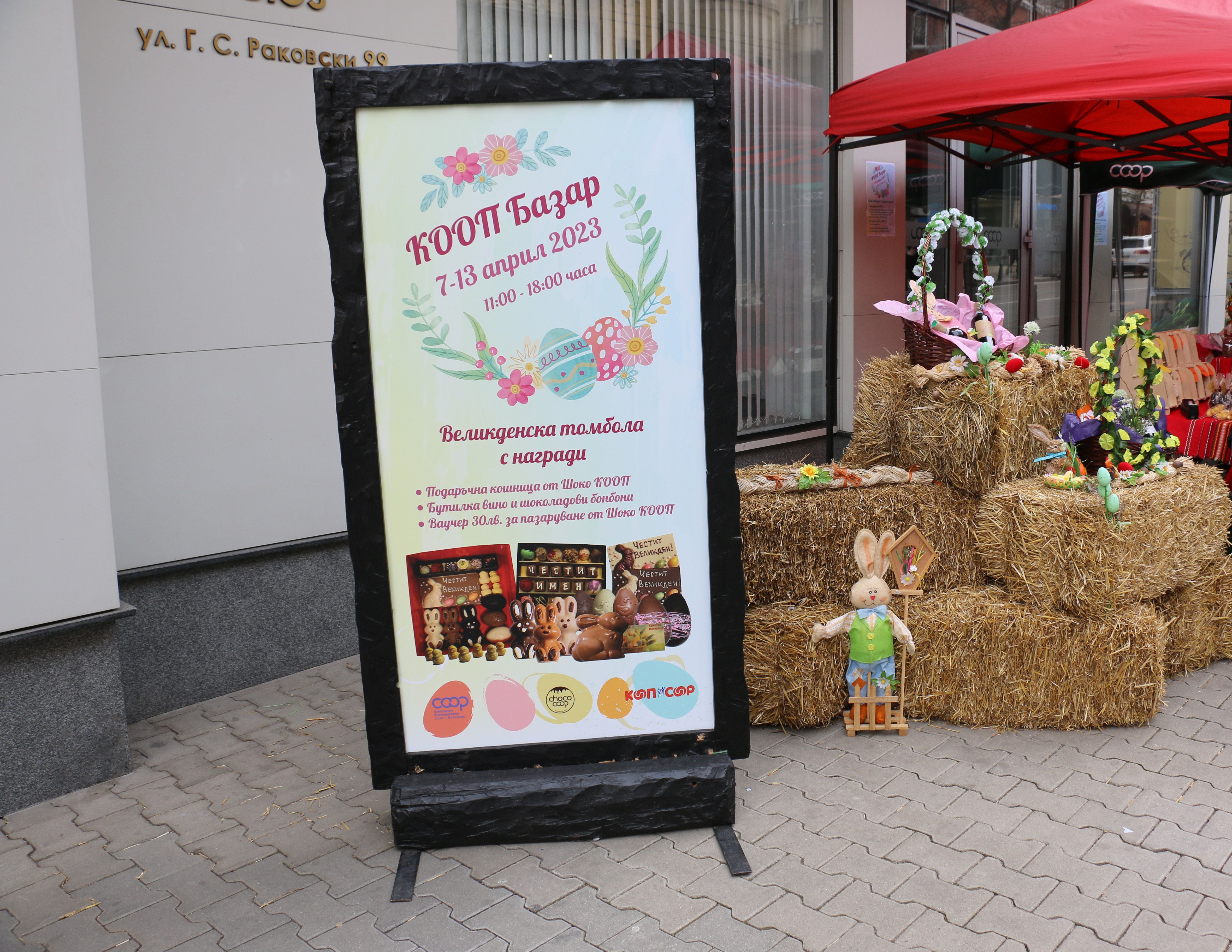 Весело великденско настроение се усеща в КООП зоната на столичната улица „Раковски“. От днес до 13 април пред сградата на Централния кооперативен съюз ще откриеш КООП Базар с тематични предложения за Великден – традиционните великденски козунаци, ръчно изработени шоколадови яйца и зайчета от кооперативната работилница „Шоко КООП“, както и селекция от сицилиански вина.