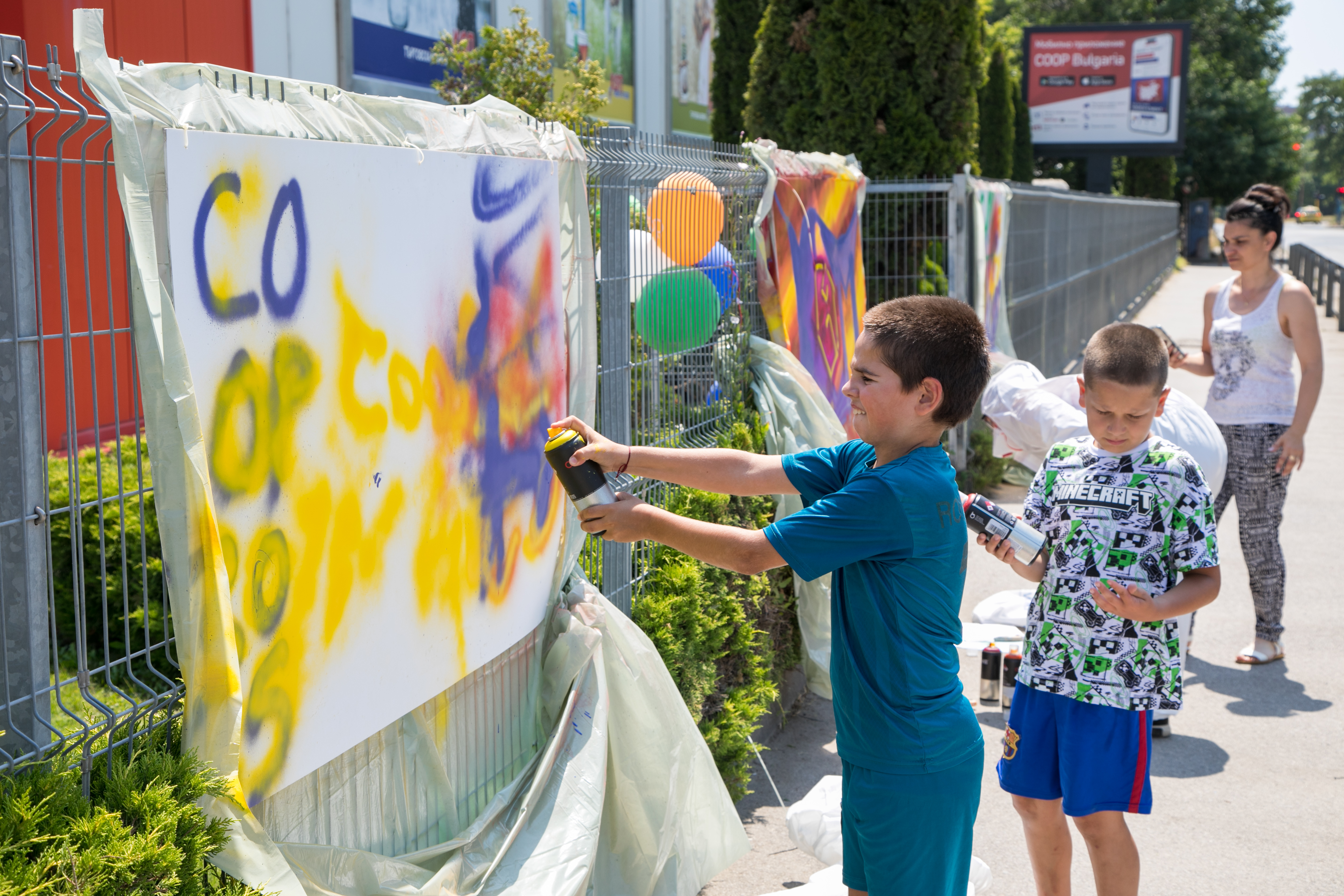 Празничната програма предложи богато разнообразие от активности за малки и големи. Началото бе поставено с инициативата „Цветен КООП“, при която доброволци засадиха цветя, оформяйки цветен надпис „COOP 2025“ – символ на устойчивост и отговорност към природата. В тематичния кът „Стани един от нас“ участниците имаха възможност да се присъединят към кооперация „Кръстопът на култури“, а новоприетите членове получиха своите книжки на официално заседание на Управителния съвет. В рамките на „Кооперативно послание“ десетки присъстващи допринесоха със свои идеи, които оформиха общо послание за Международната година на кооперациите. Играта „Графити COOP“ даде възможност на желаещите да изразят своя поглед към кооперацията чрез цветни рисунки със спрей върху специални платна. Активността „Хвърчащи мечти“ обедини децата около оцветяването на хвърчила, които в края на събитието полетяха в небето като символ на надеждата и бъдещето. По време на празника бяха обявени и полуфиналистите в конкурса за ученическо есе „Моето бъдеще с КООП“, сред които се открои Чара Ранчева, ученик на 128 СУ „Алберт Айнщайн“ – отличена както за своето есе, така и за впечатляващата си рисунка в играта Графити COOP.