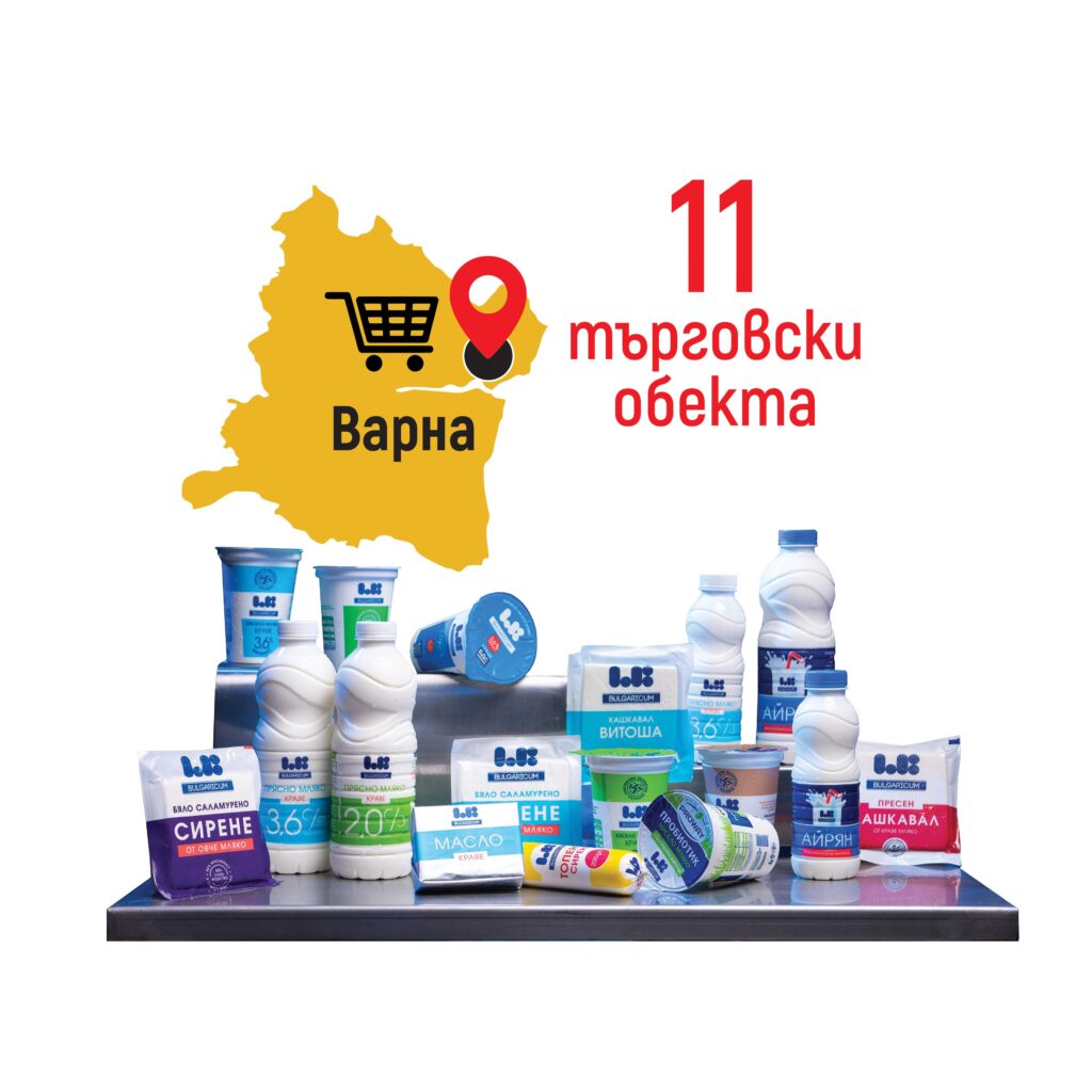 Търговски обекти от веригата „КООП-Заедно на пазар“ в област Варна, в които ще откриете продуктите на „Ел Би Булгарикум“ ЕАД на справедливи цени